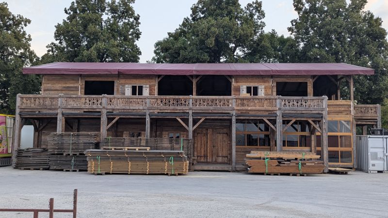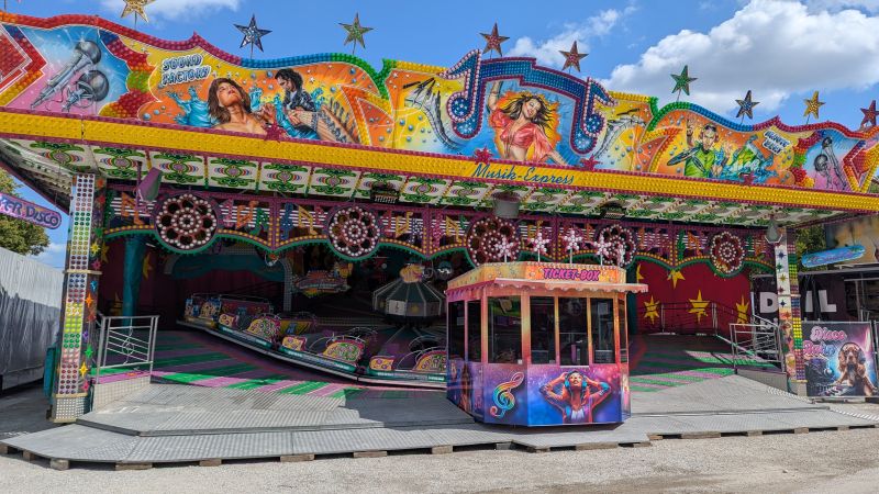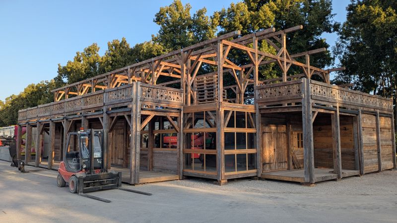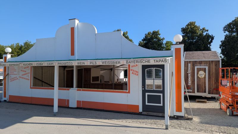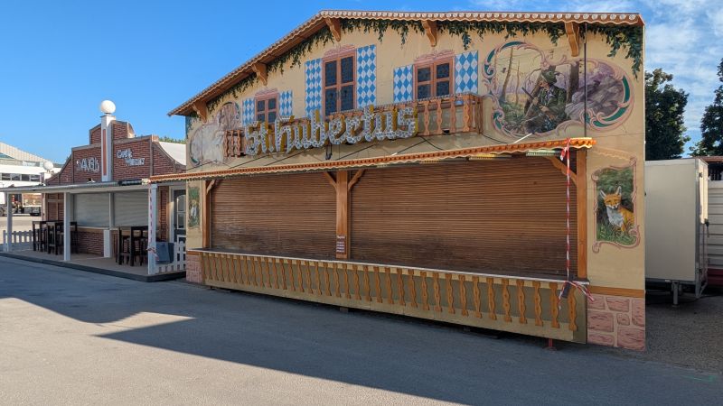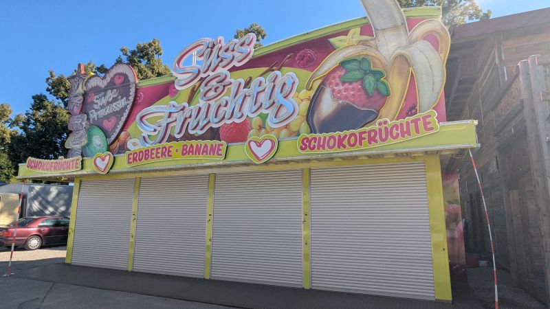 13.08.2025 - Es wird fleißig aufgebaut. Neu hinzugekommen sind Martl's Süße Früchte, Schneller's Schokofrüchte und die erste Schießbude.