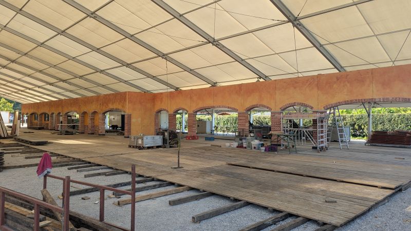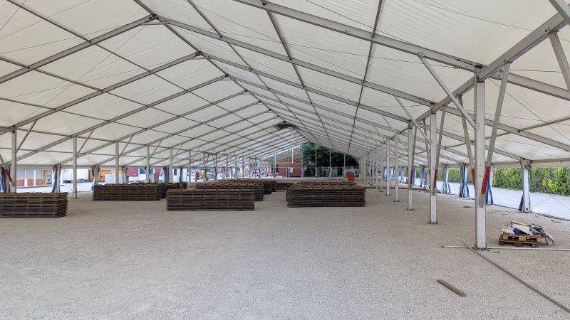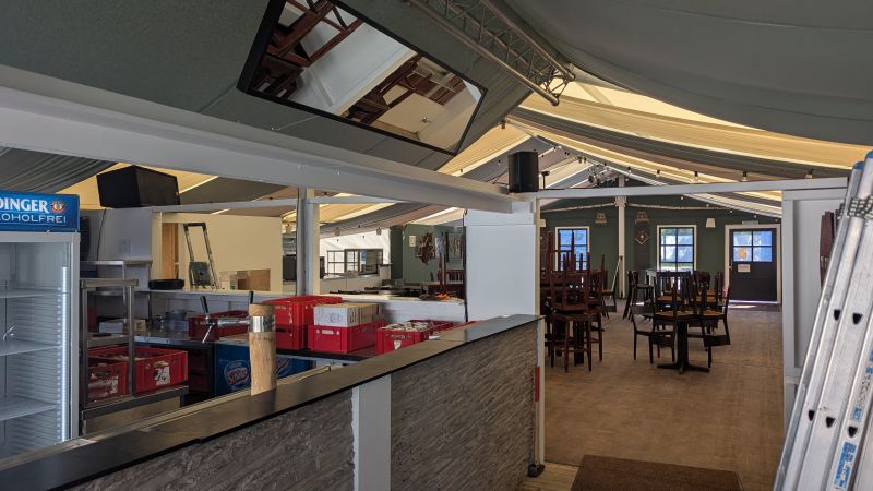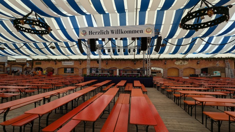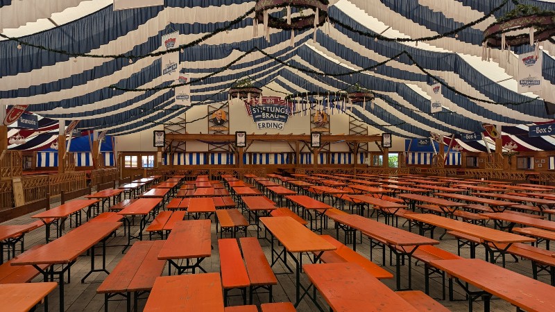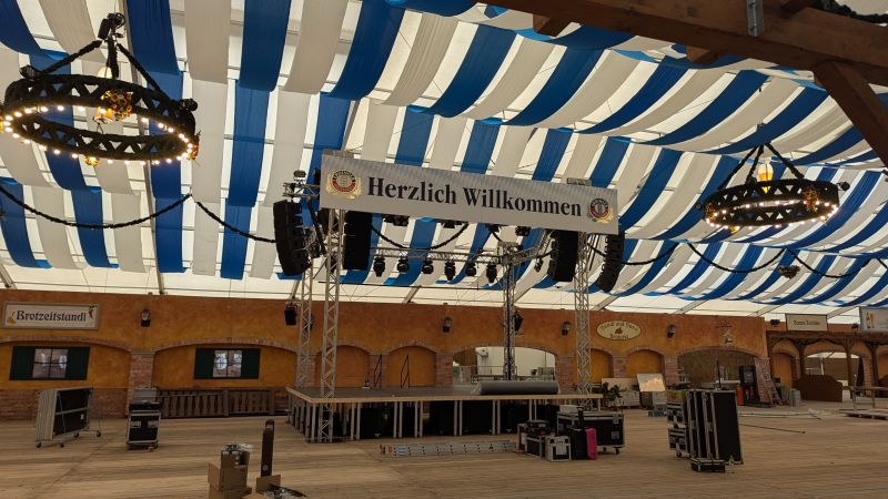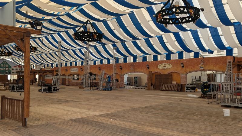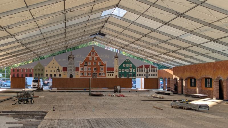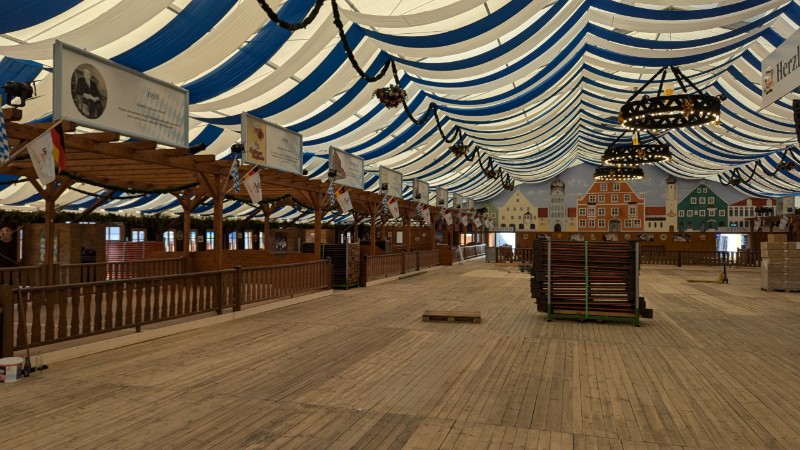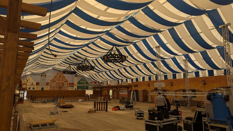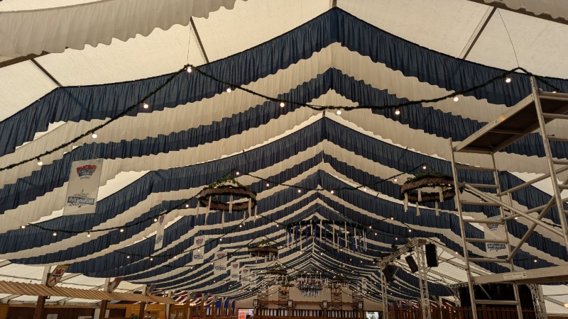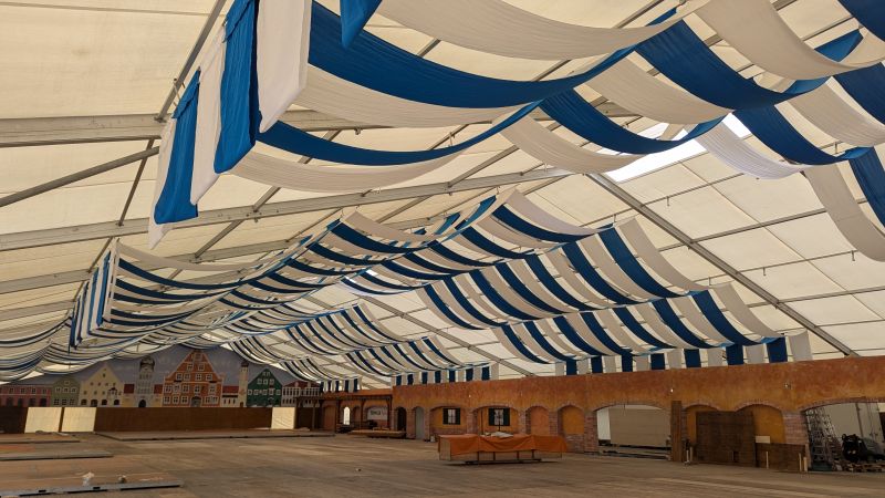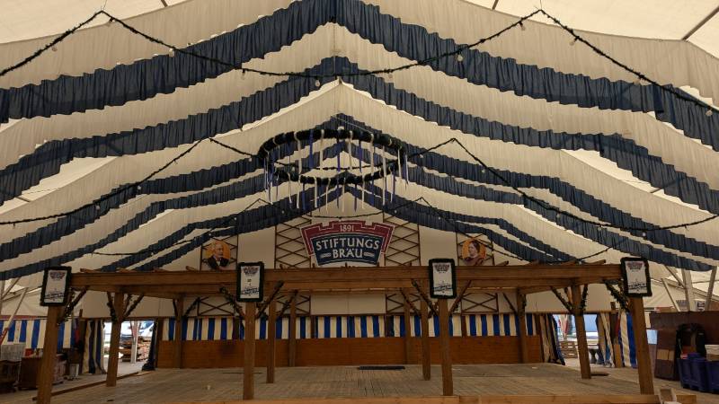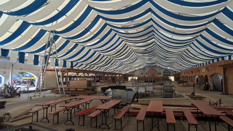 16.08.2025 - Der Innenausbau des Erdinger Weißbräu Festzeltes und Fischer's Stiftungszeltes schreitet voran.