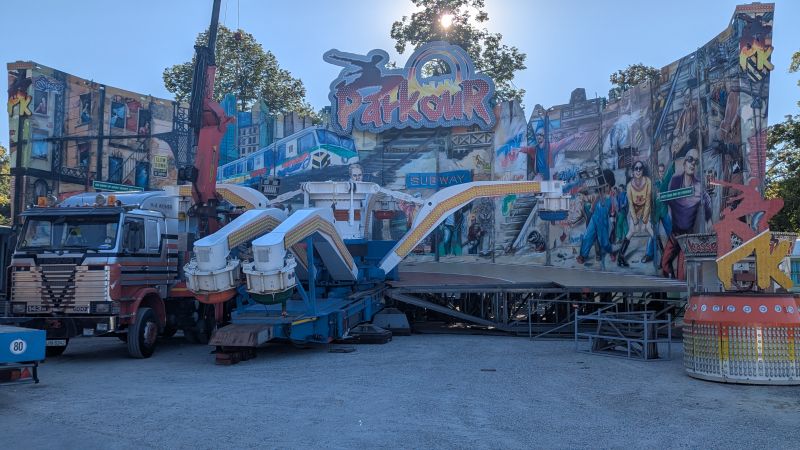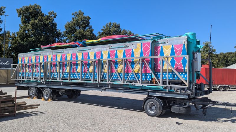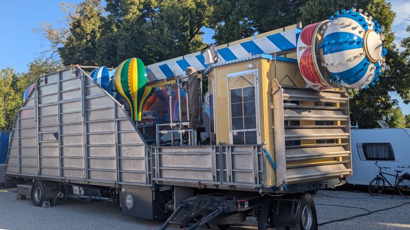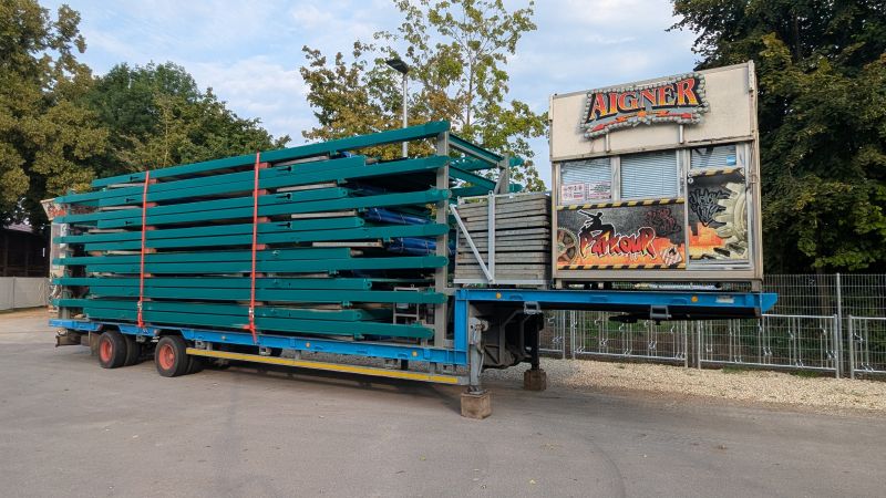 19.08.2025 - Der Aufbau des Erdinger Herbstfestes 2025 geht in die heiße Phase. Viele beliebte Stände und Fahrgeschäfte sind angekommen.